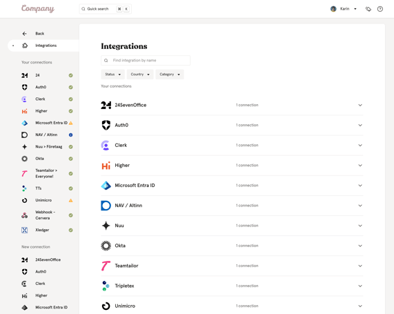 Example: The group “Company X” in Huma should connect to the Company X Tripletex account.
