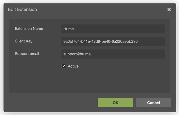 - Copy the 'Client Key' and save the Extension