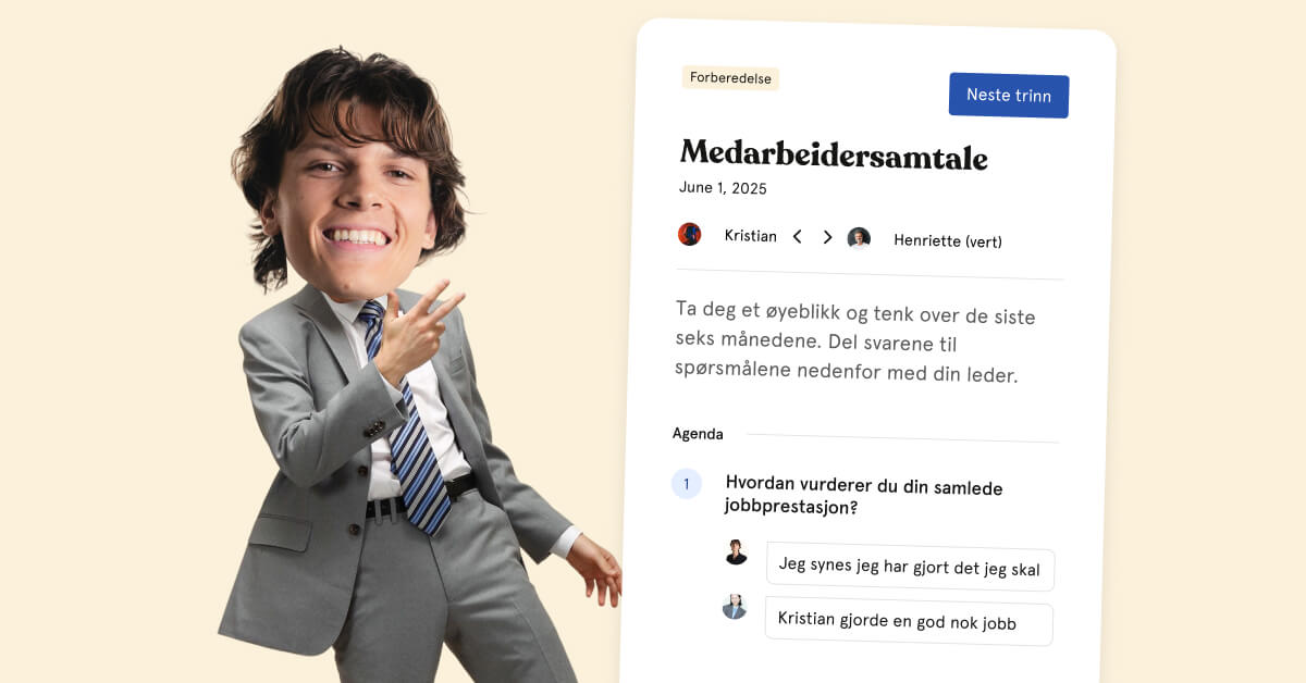 Se for deg en ansatt. La oss kalle han for Kristian. Han har vært i jobben sin i flere år, og har tenkt at han for det meste har gjort en god jobb – ikke den mest hardtarbeidende, men langt fra lat. Dette er hans og hans sjefs vei til medarbeidersamtalen.