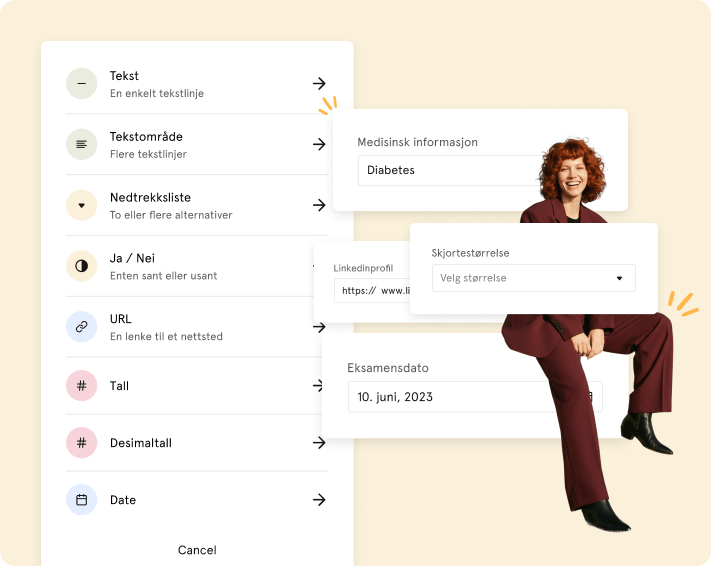 Vi prøver alltid å dekke dine behov og hjelpe deg i hverdagslivet. Men alle har ulike behov, og har ikke anledning til å dekke alle. Så med egendefinerte profilfelt, har du mulighet til å tilpasse personalinformasjonen din nøyaktig sånn du trenger den.