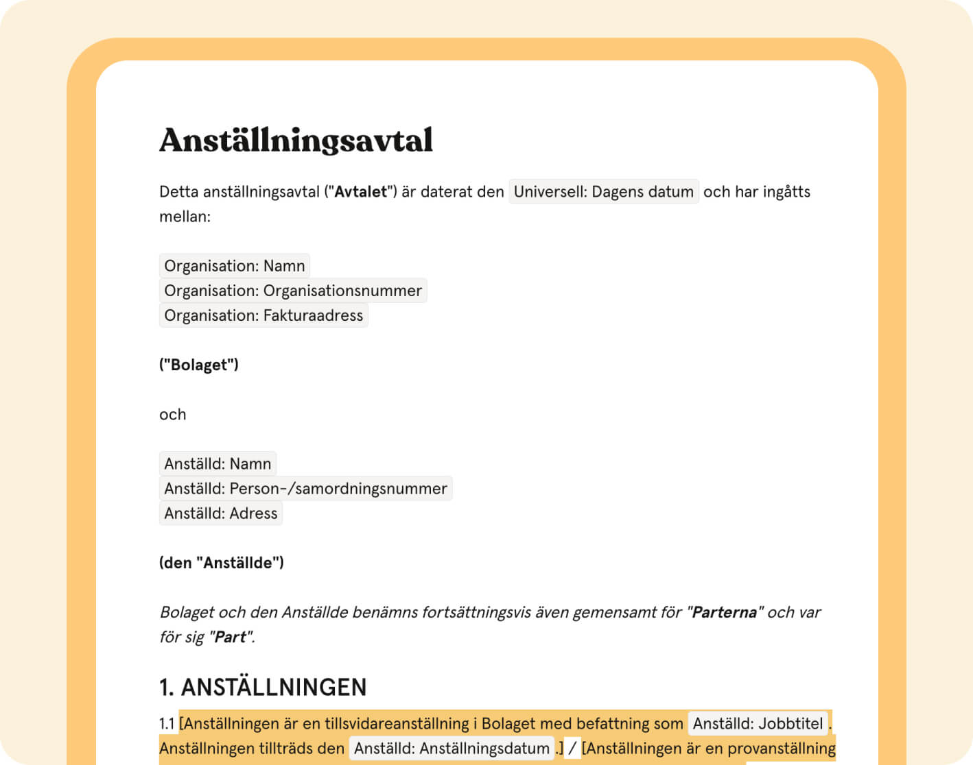 Mallarna finns där hela tiden. Det enda du behöver göra är att fylla i vad som är olika från kontrakt till kontrakt – såsom personal, lön och arbets procent. Vi tror inte att det kan bli mycket lättare än så.